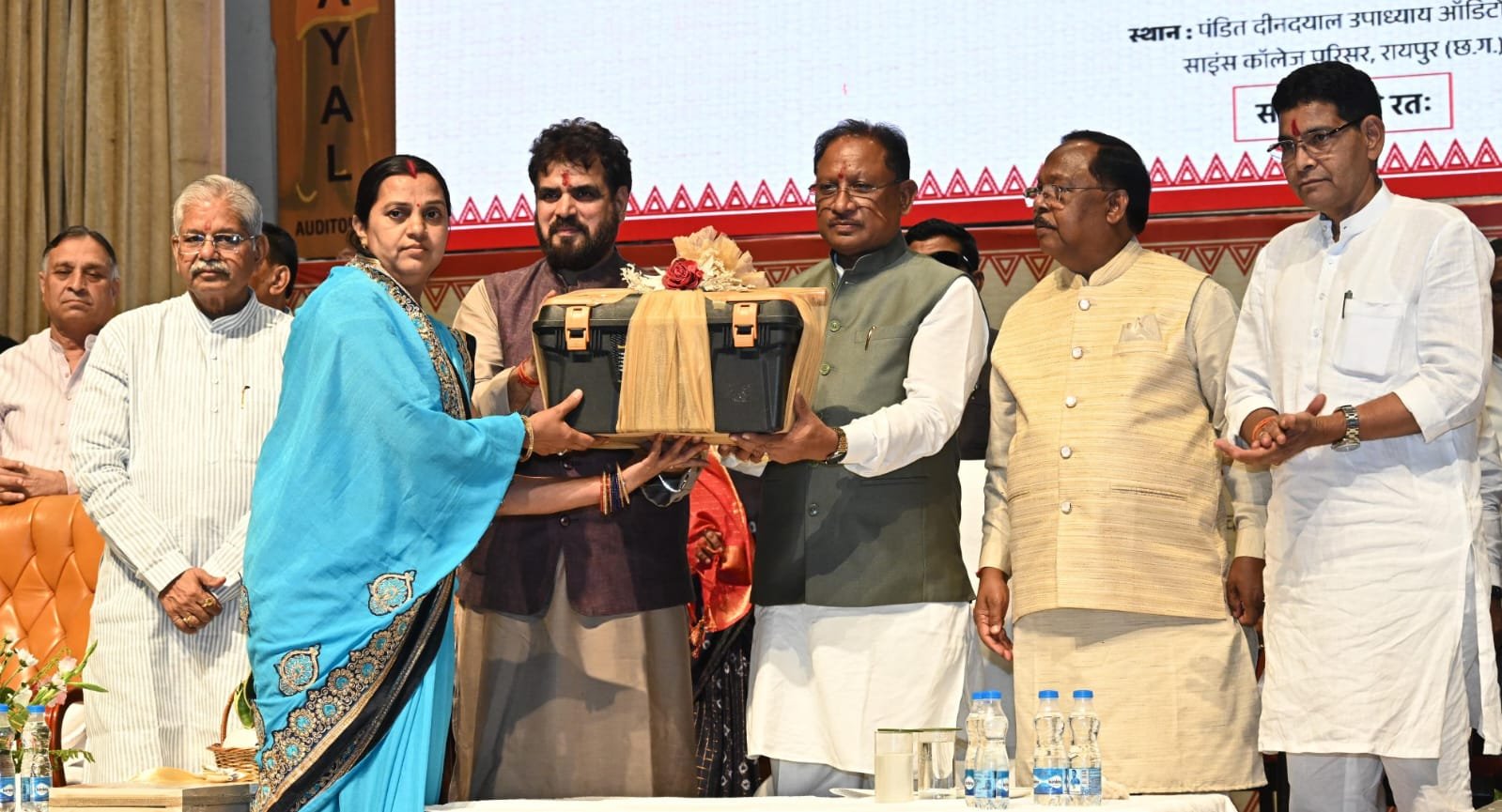 रायपुर। मुख्यमंत्री विष्णुदेव साय आज राजधानी स्थित पंडित दीनदयाल उपाध्याय ऑडिटोरियम में छत्तीसगढ़ खादी तथा ग्रामोद्योग बोर्ड के नवनियुक्त अध्यक्ष राकेश पांडेय के पदभार ग्रहण कार्यक्रम में शामिल हुए। उन्होंने श्री पांडेय को नए दायित्व के लिए बहुत-बहुत बधाई और शुभकामनाएं दीं। इस अवसर पर राष्ट्रीय बांस मिशन अंतर्गत 10 महिला हितग्राहियों को बांस टूल किट प्रदान की गई।